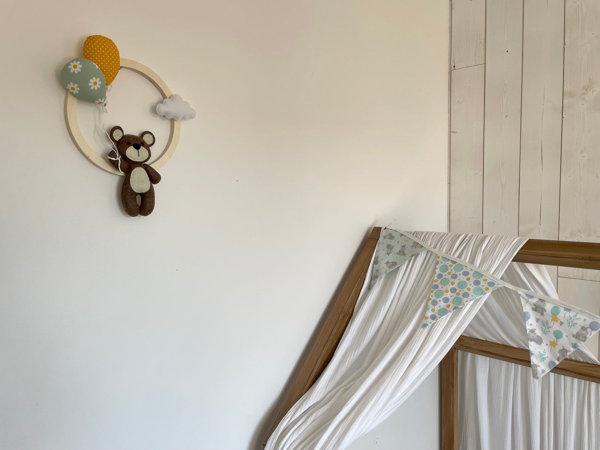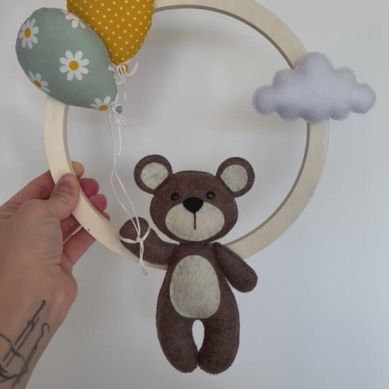 Ours et nuage en feutrine et ballons en tissu coton.