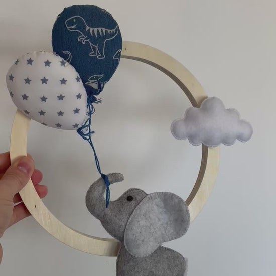 Éléphant et nuage en feutrine et ballons en tissu coton.