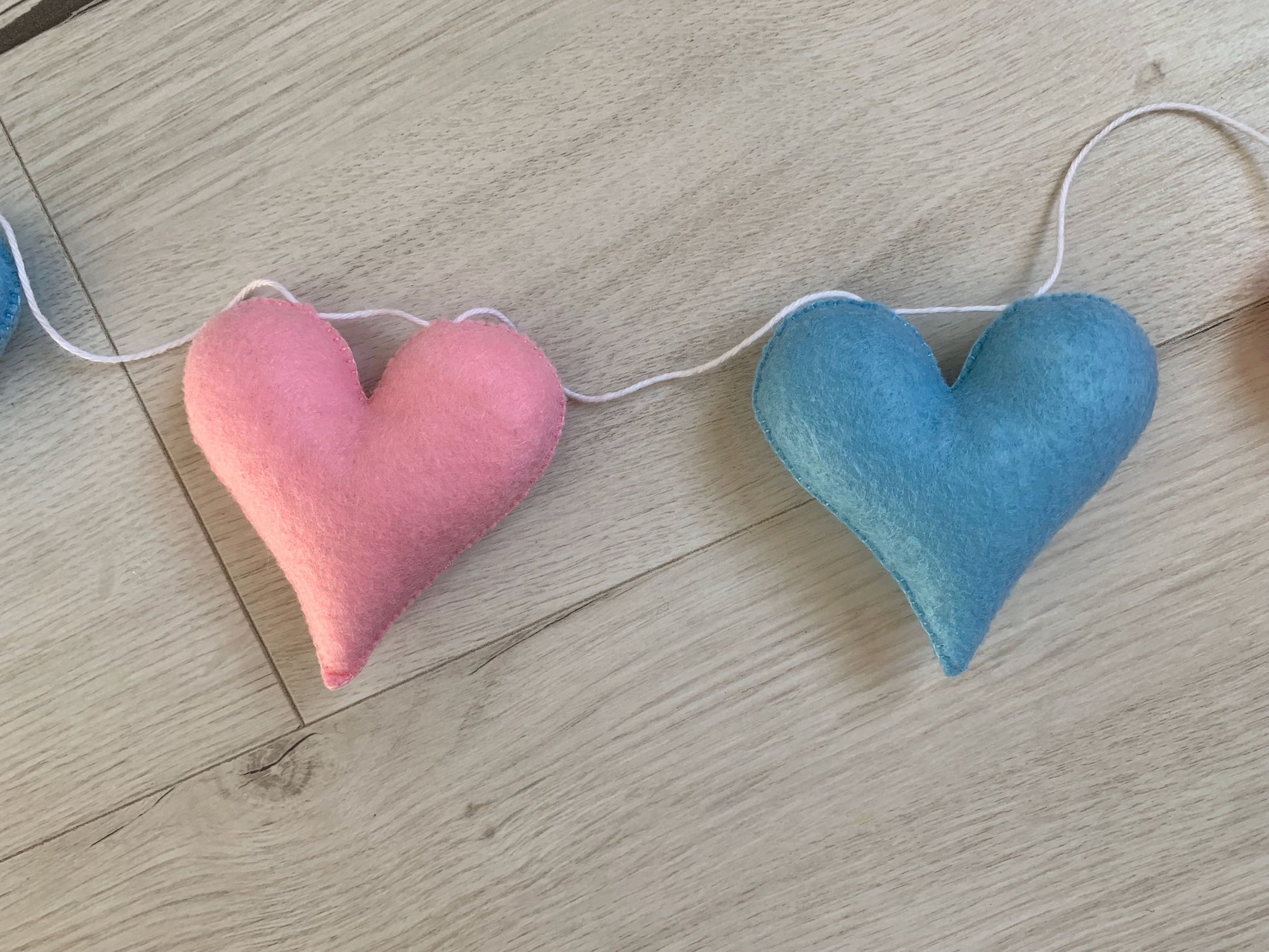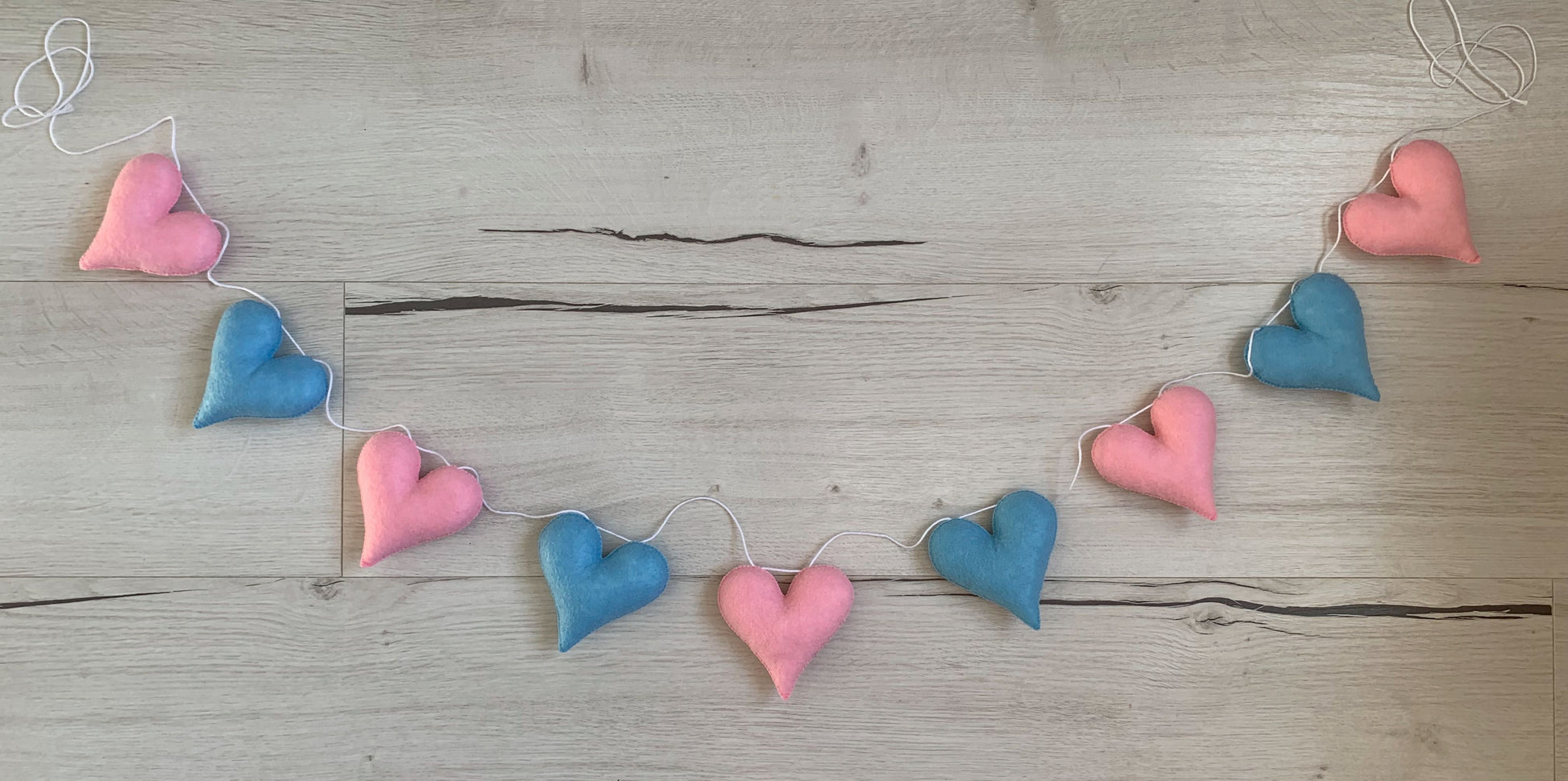 Guirlande de 9 coeurs en feutrine. Rose et bleu.