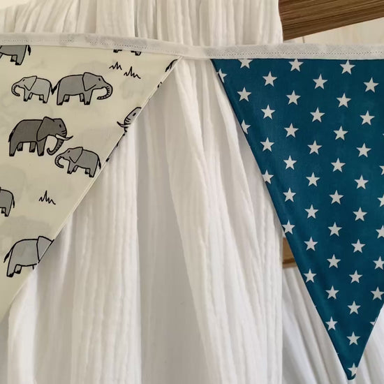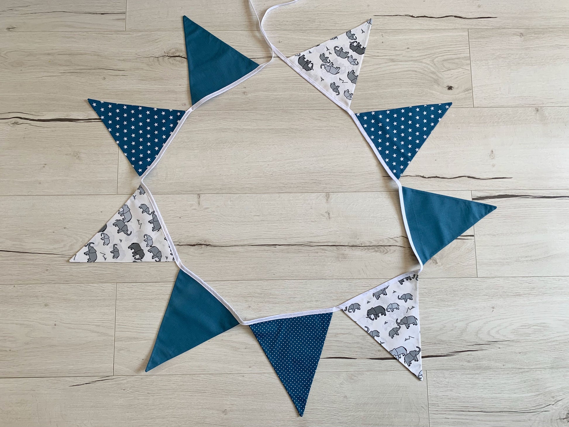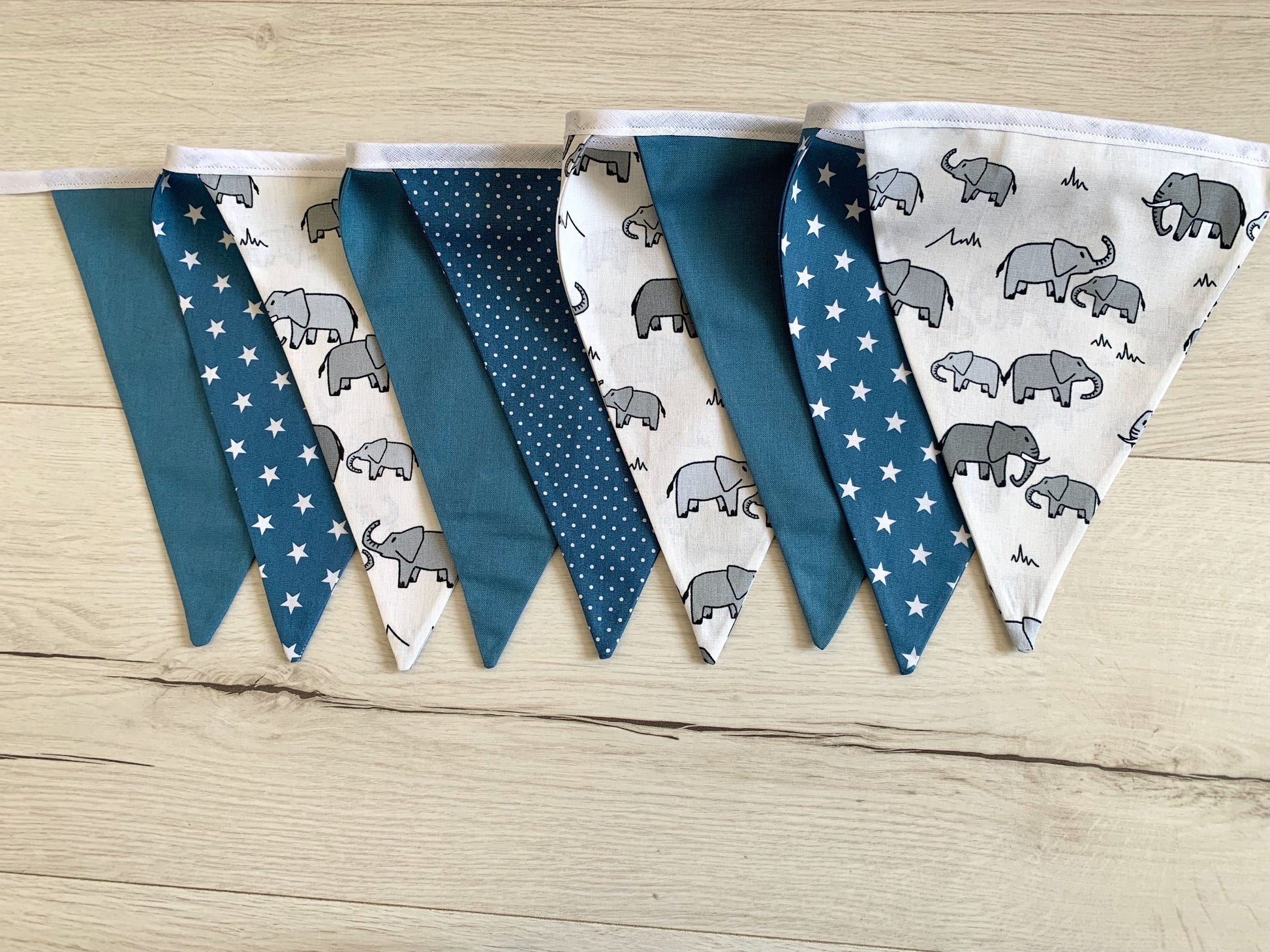 Guirlande de fanions. Éléphants. Décoration chambre bébé