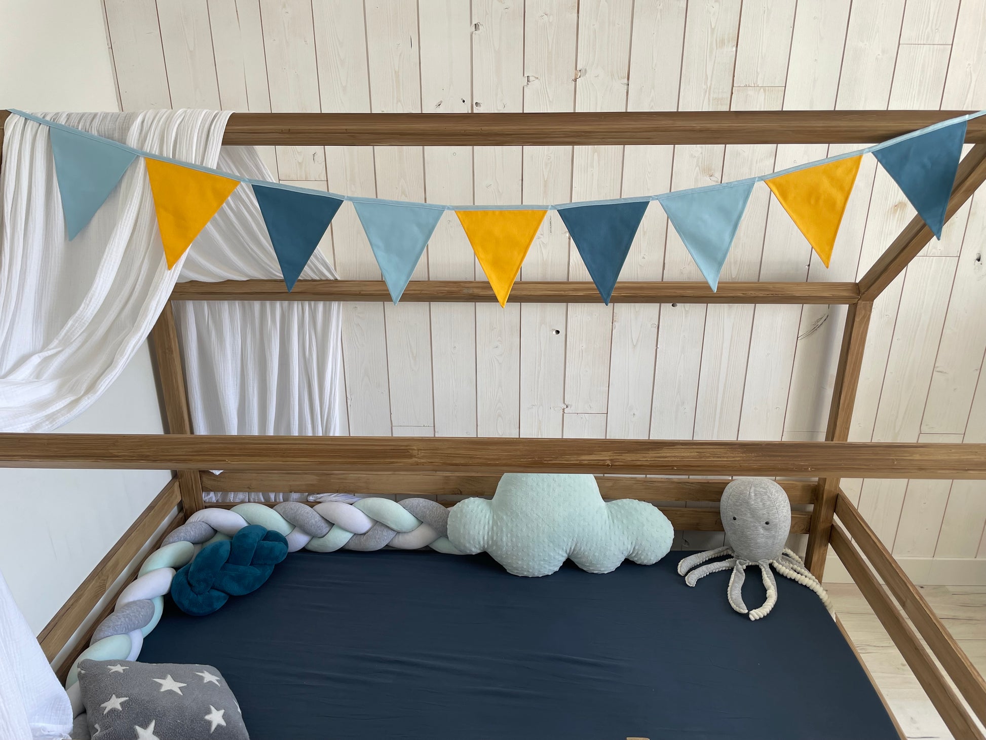 Guirlande de 9 fanions en coton oeko-tex.