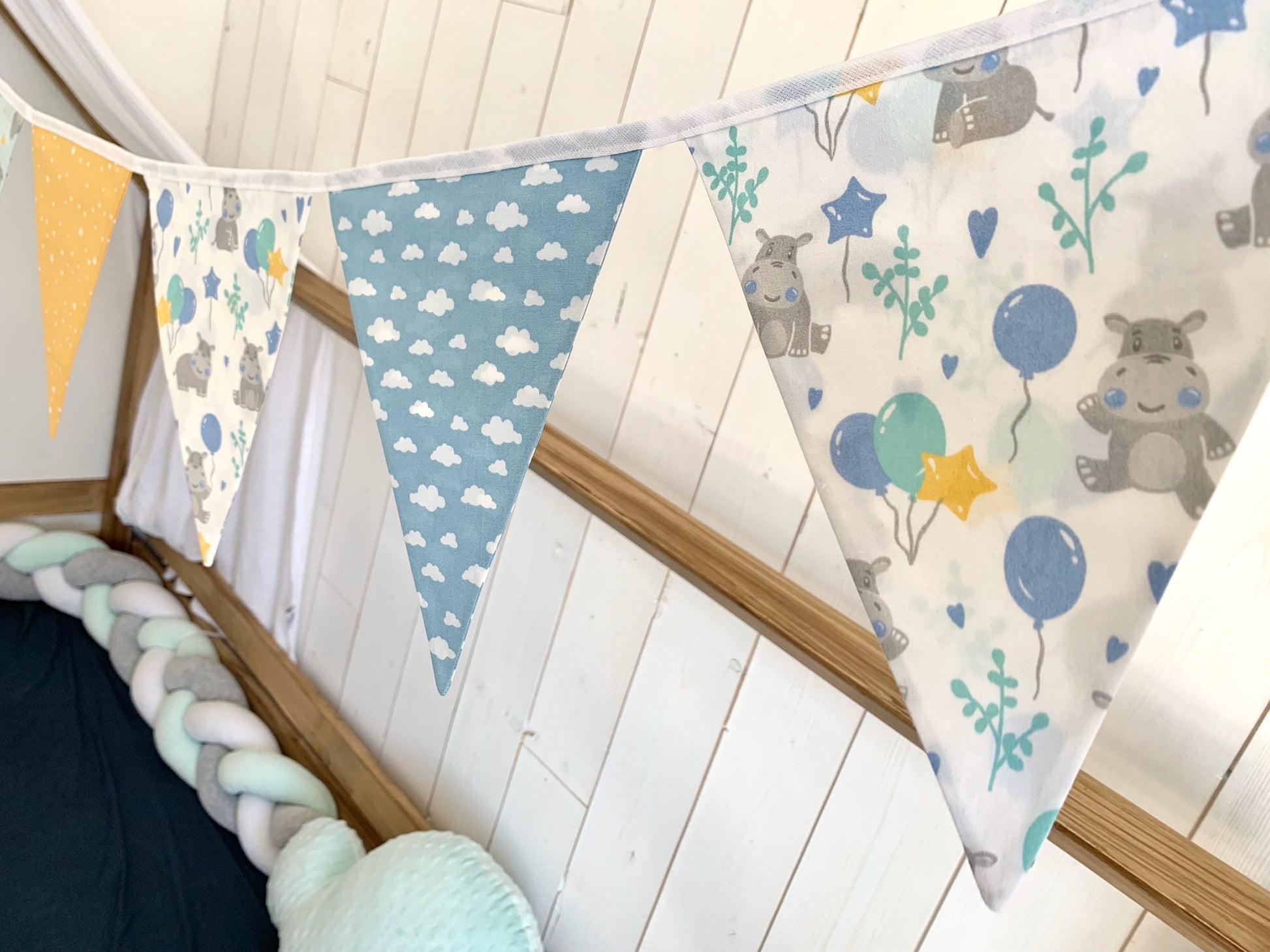 Guirlande de fanions. Hippopotames. Déco chambre bébé