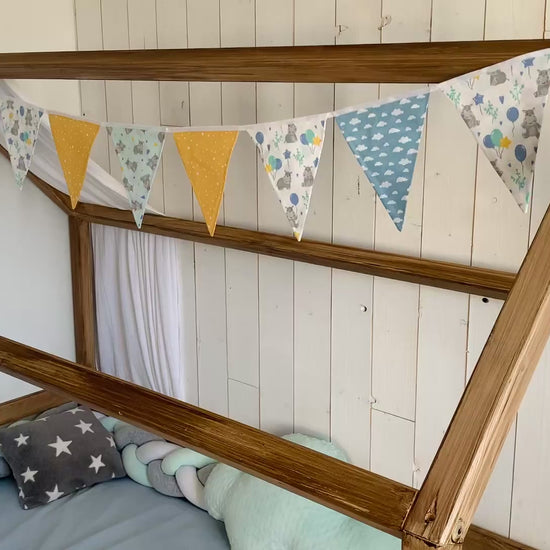 La guirlande de fanions habillera parfaitement la chambre de votre bébé, pour une ambiance de douceur.