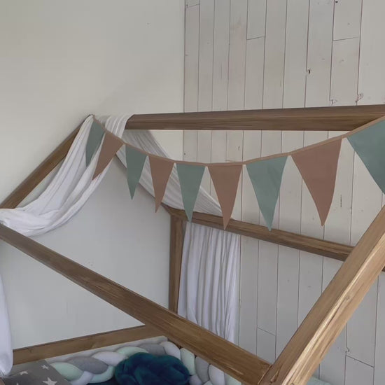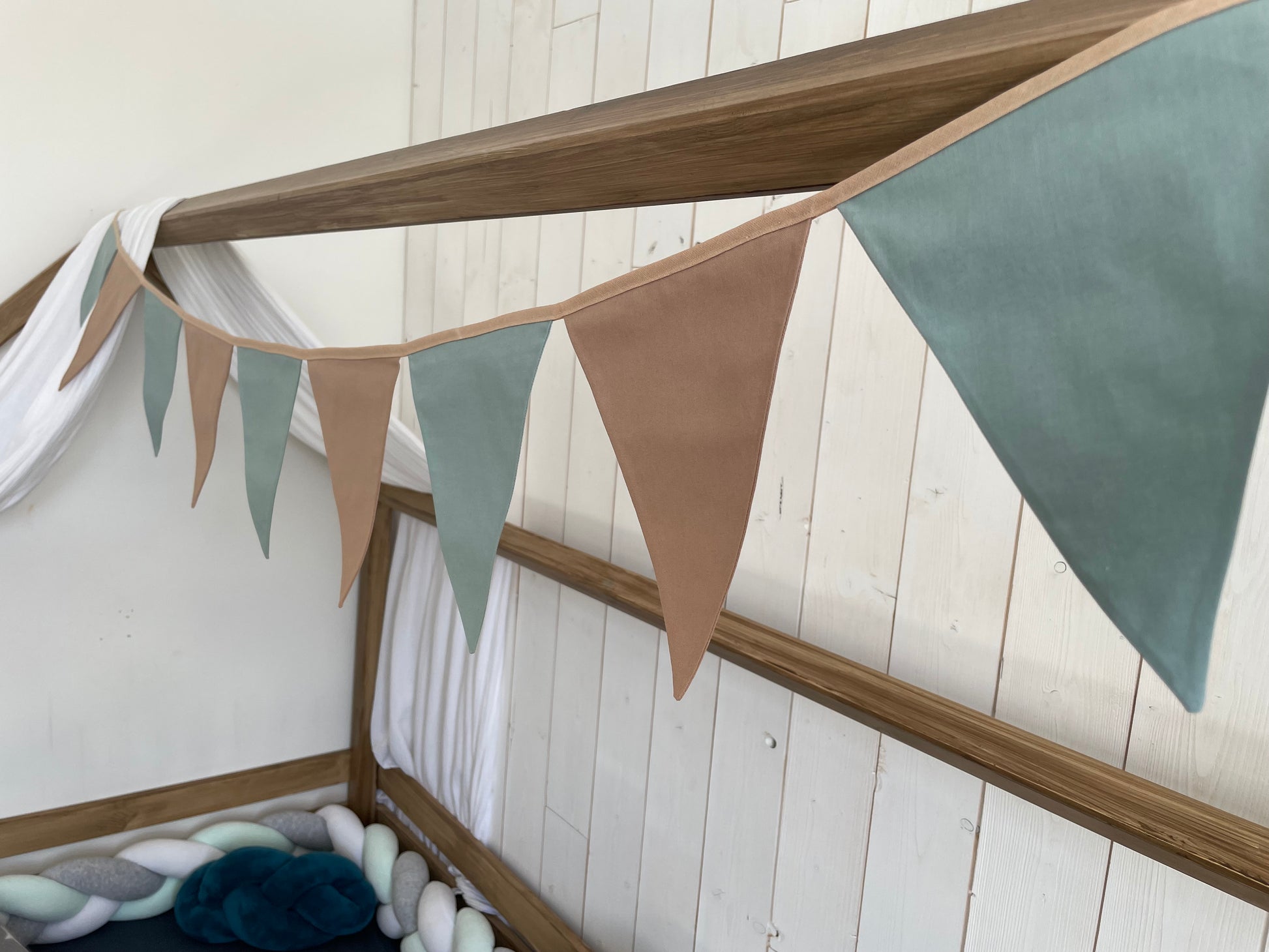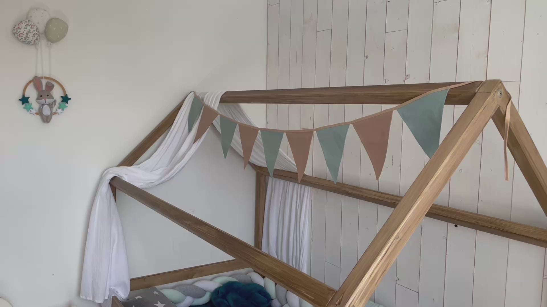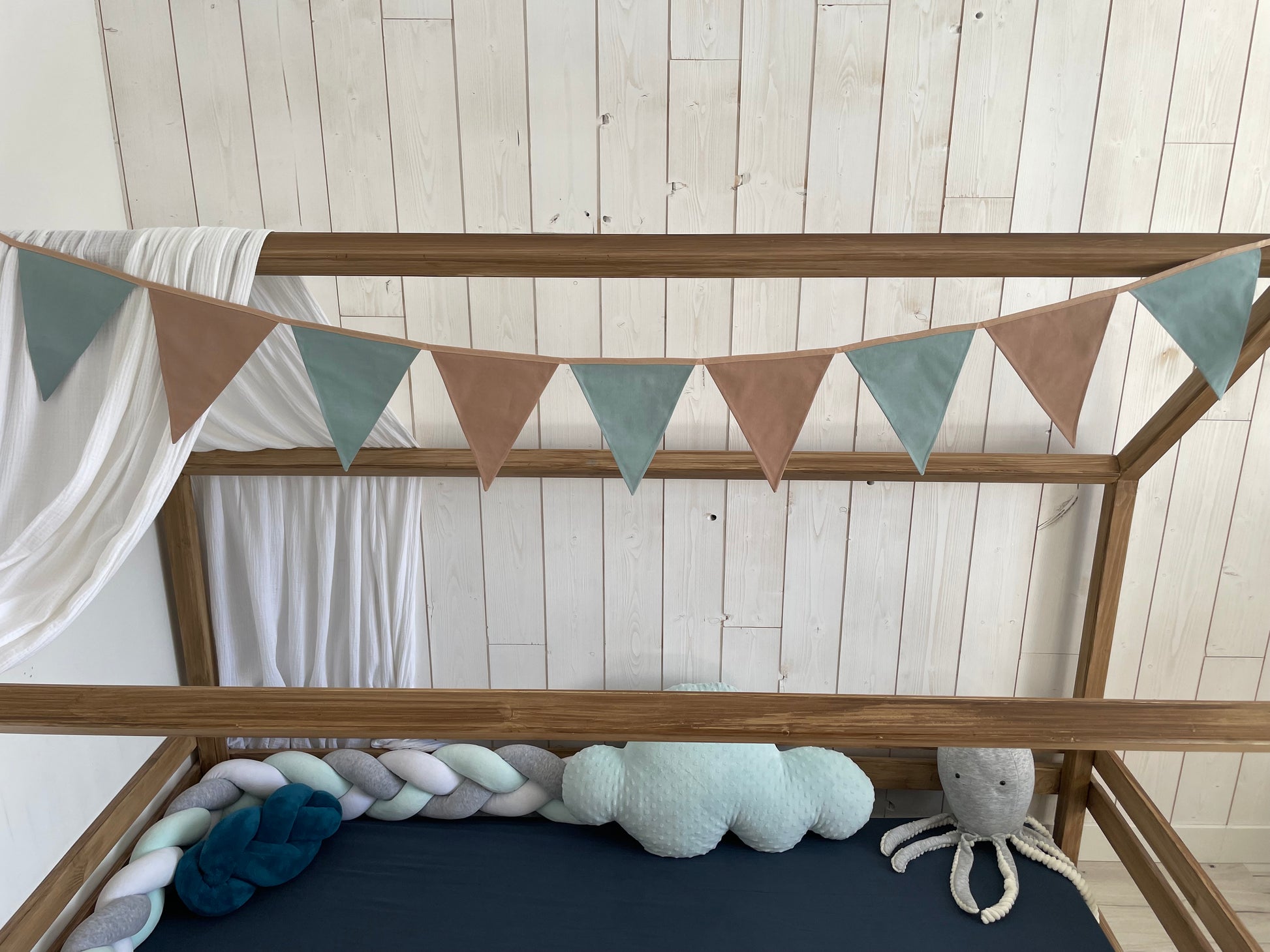 Cette jolie guirlande aux tons neutres apportera de la douceur dans la chambre de bébé.