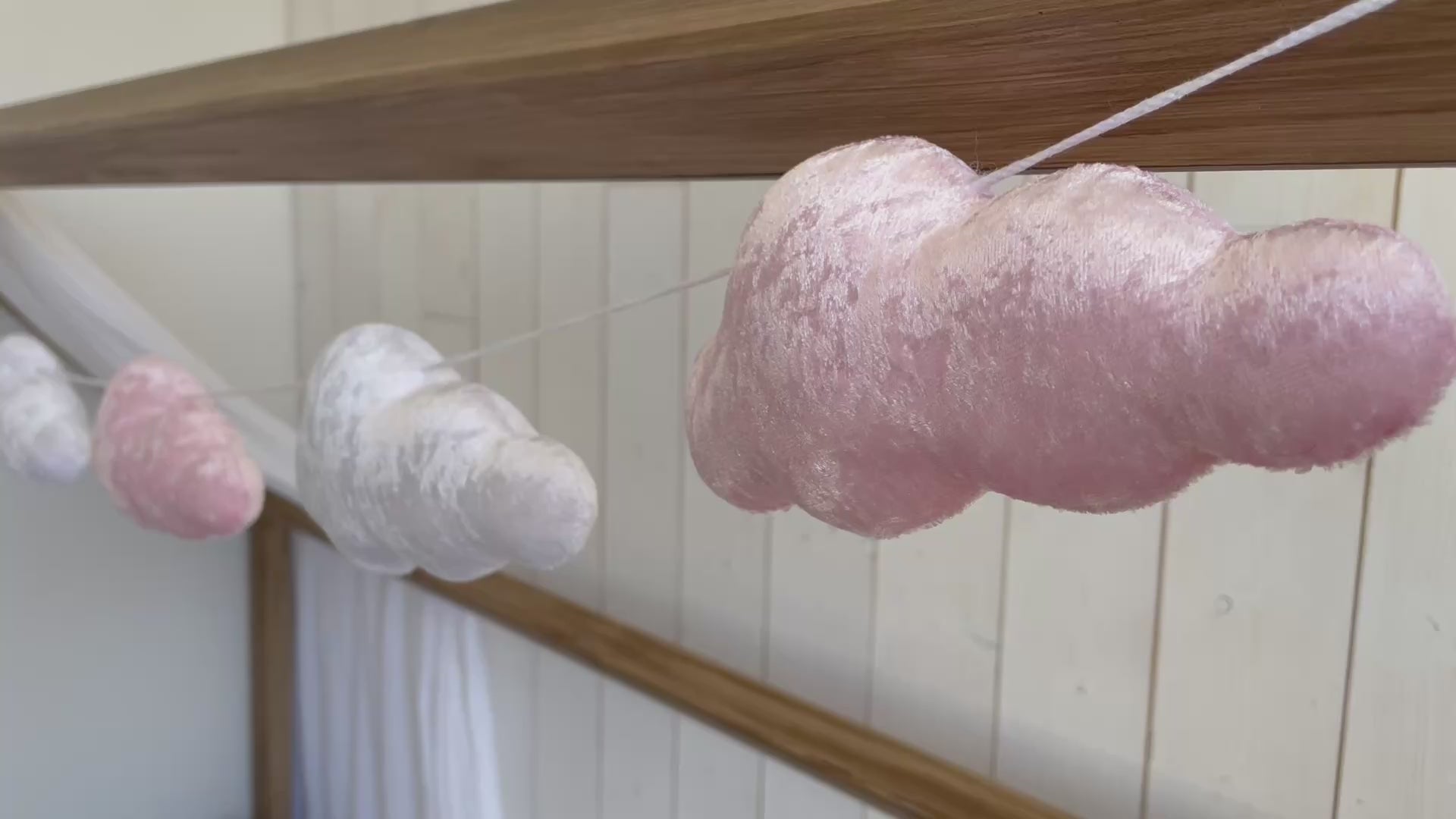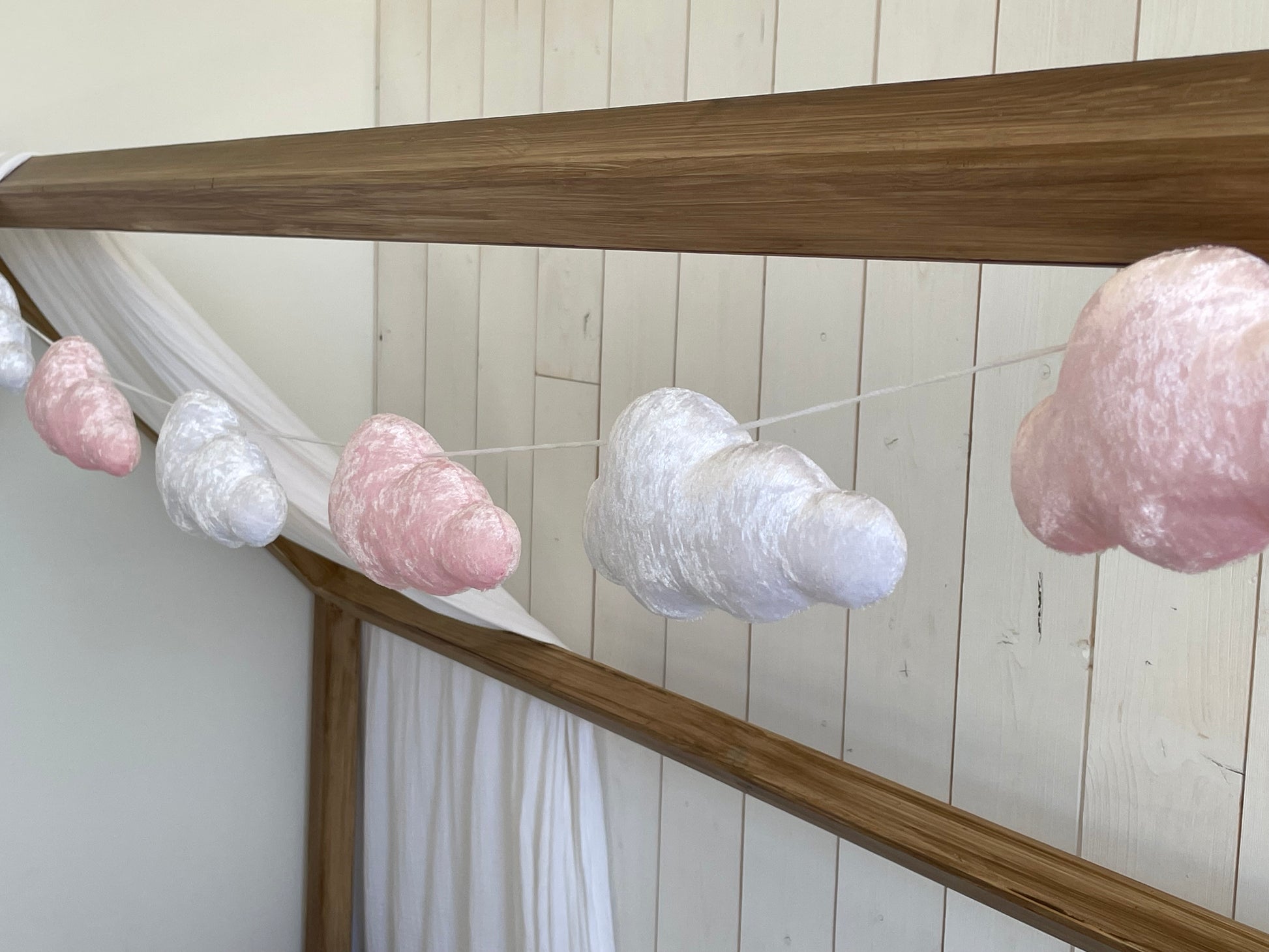 Craquez pour cette jolie guirlande pour décorer un lit cabane, un lit à barreaux ou un mur. Le velours apportera une touche de brillance et de douceur à la chambre de bébé.