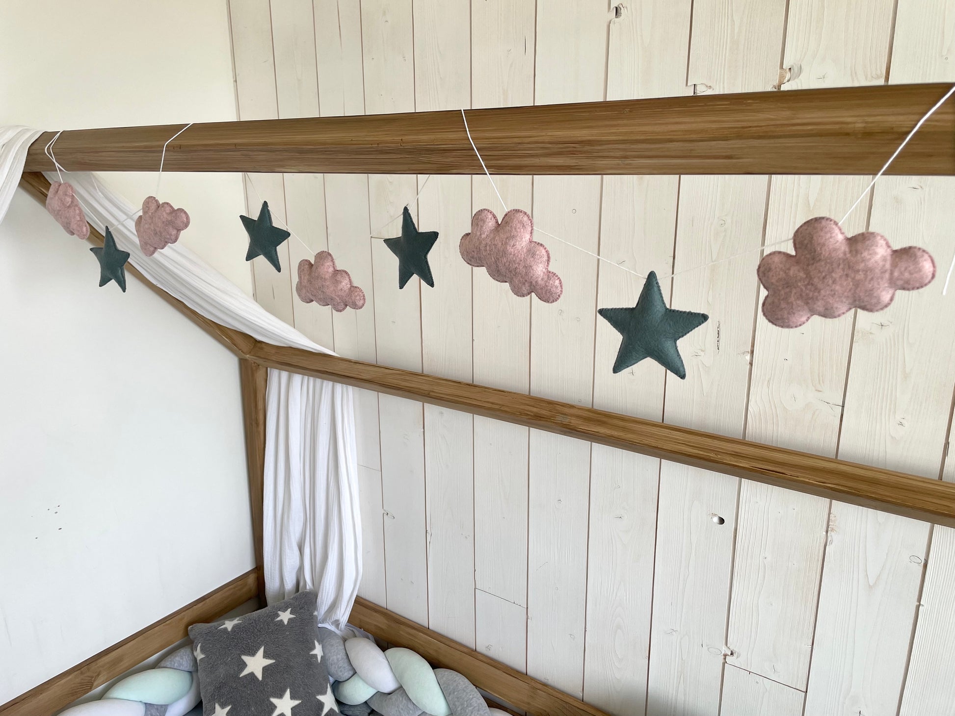 Une jolie guirlande aux couleurs neutres qui viendra parfaire la chambre de votre enfant .