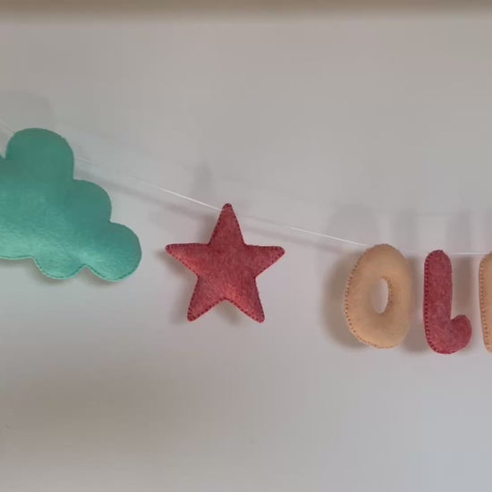 Guirlande en feutrine avec le choix des motifs et des couleurs.