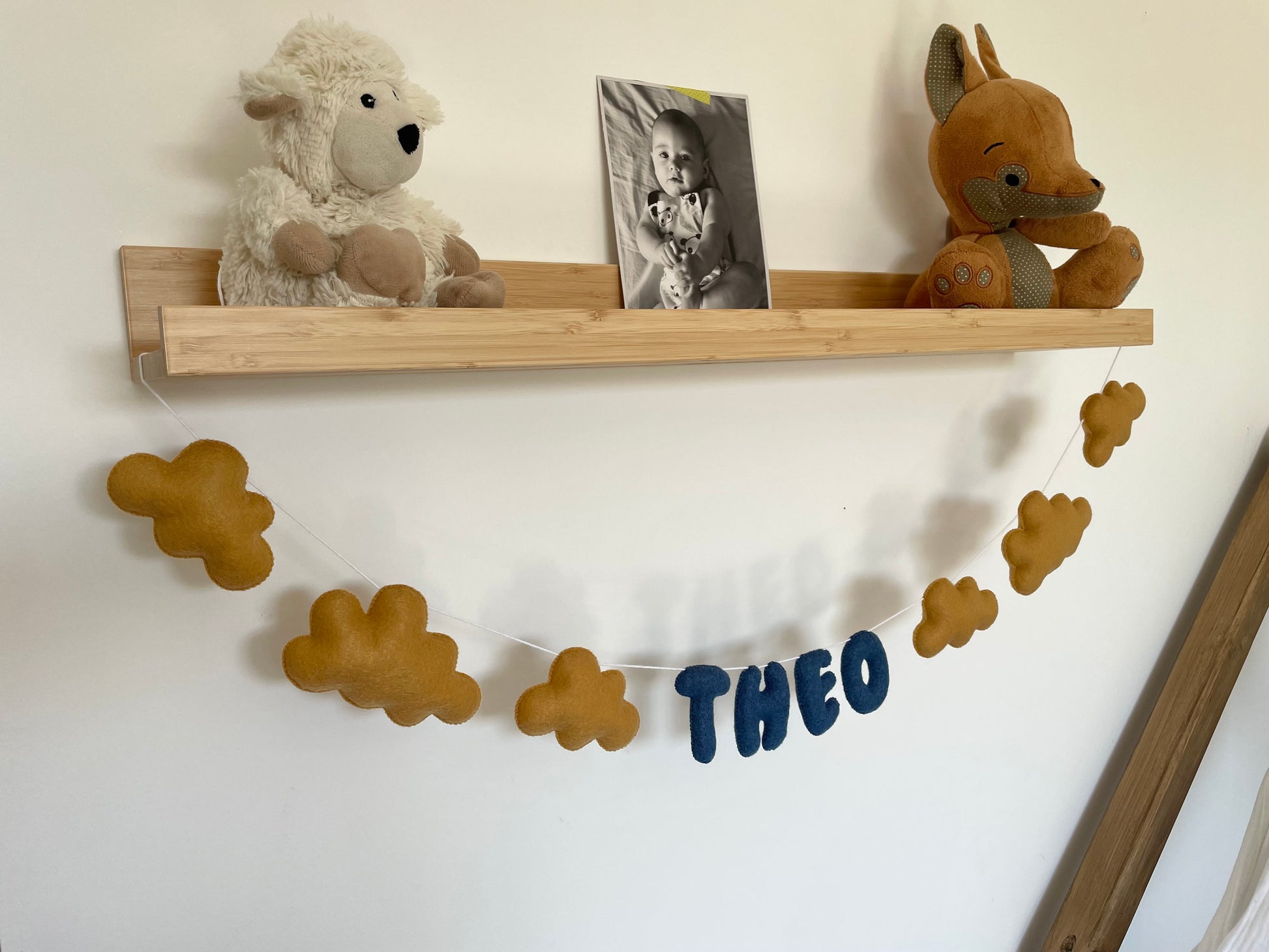 Guirlande en feutrine avec le choix des motifs et des couleurs.
