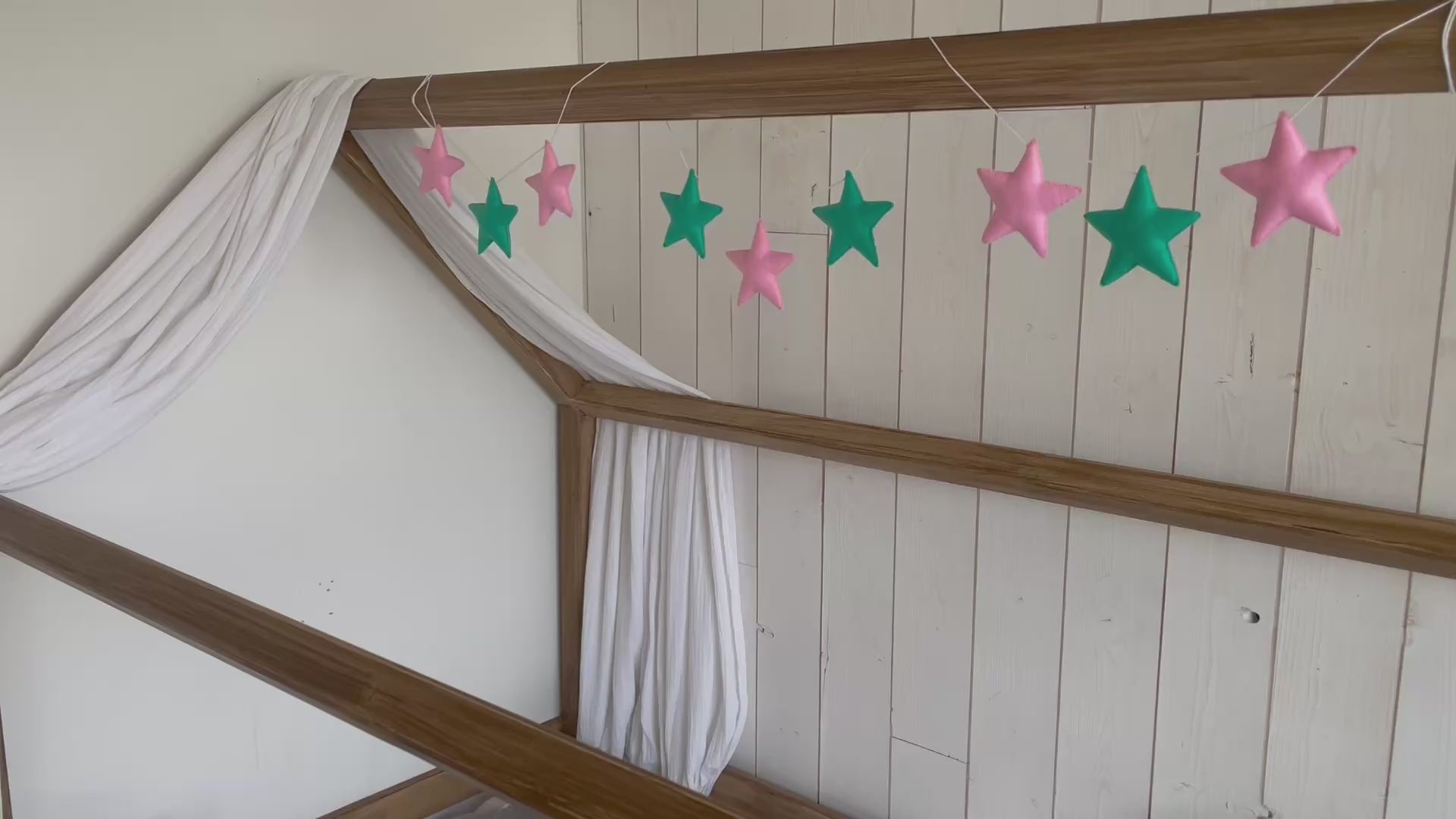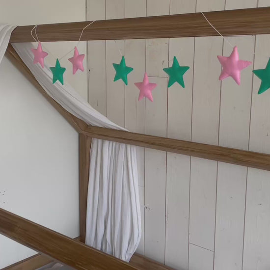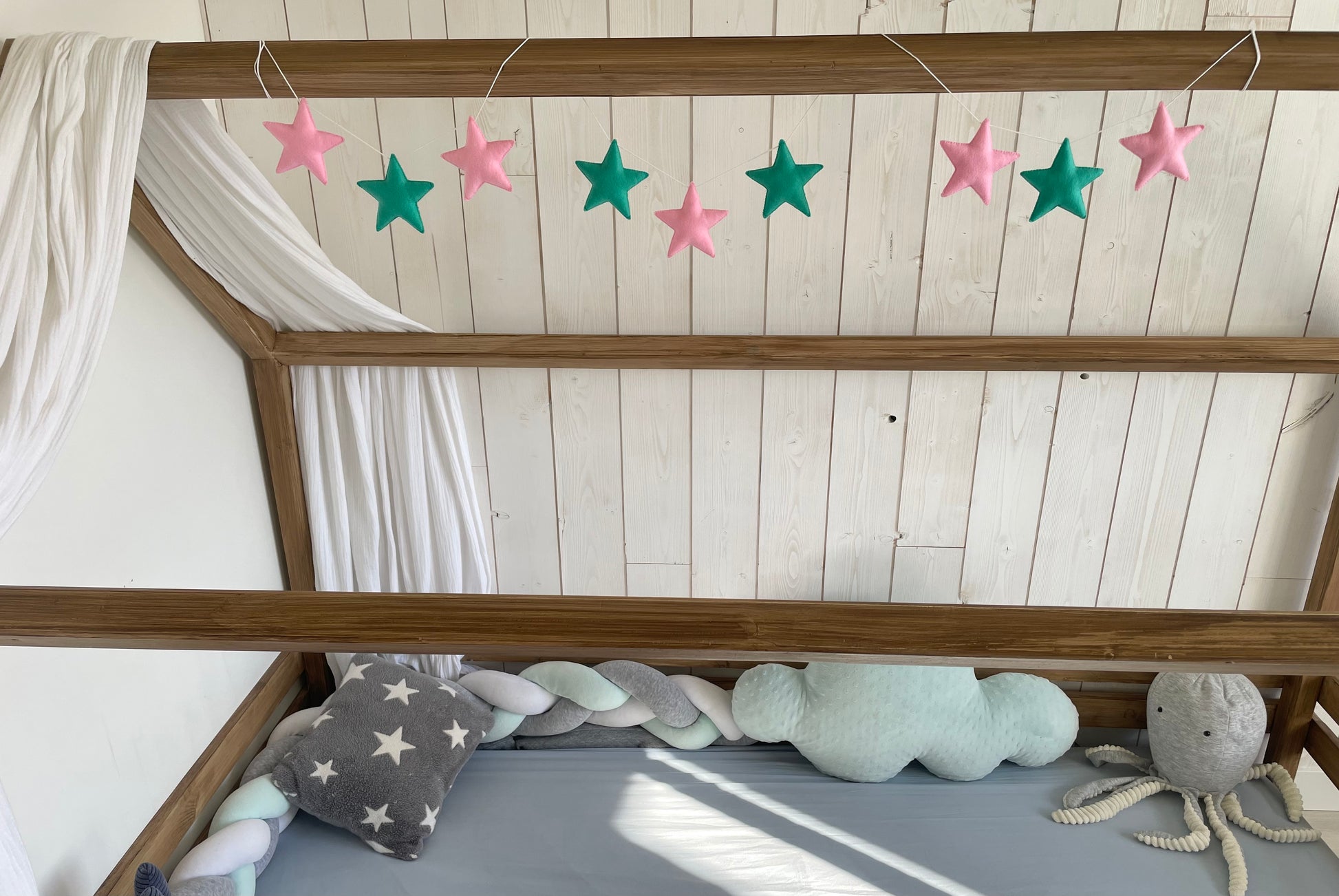 Guirlande de 9 étoiles en feutrine. Turquoise et rose.