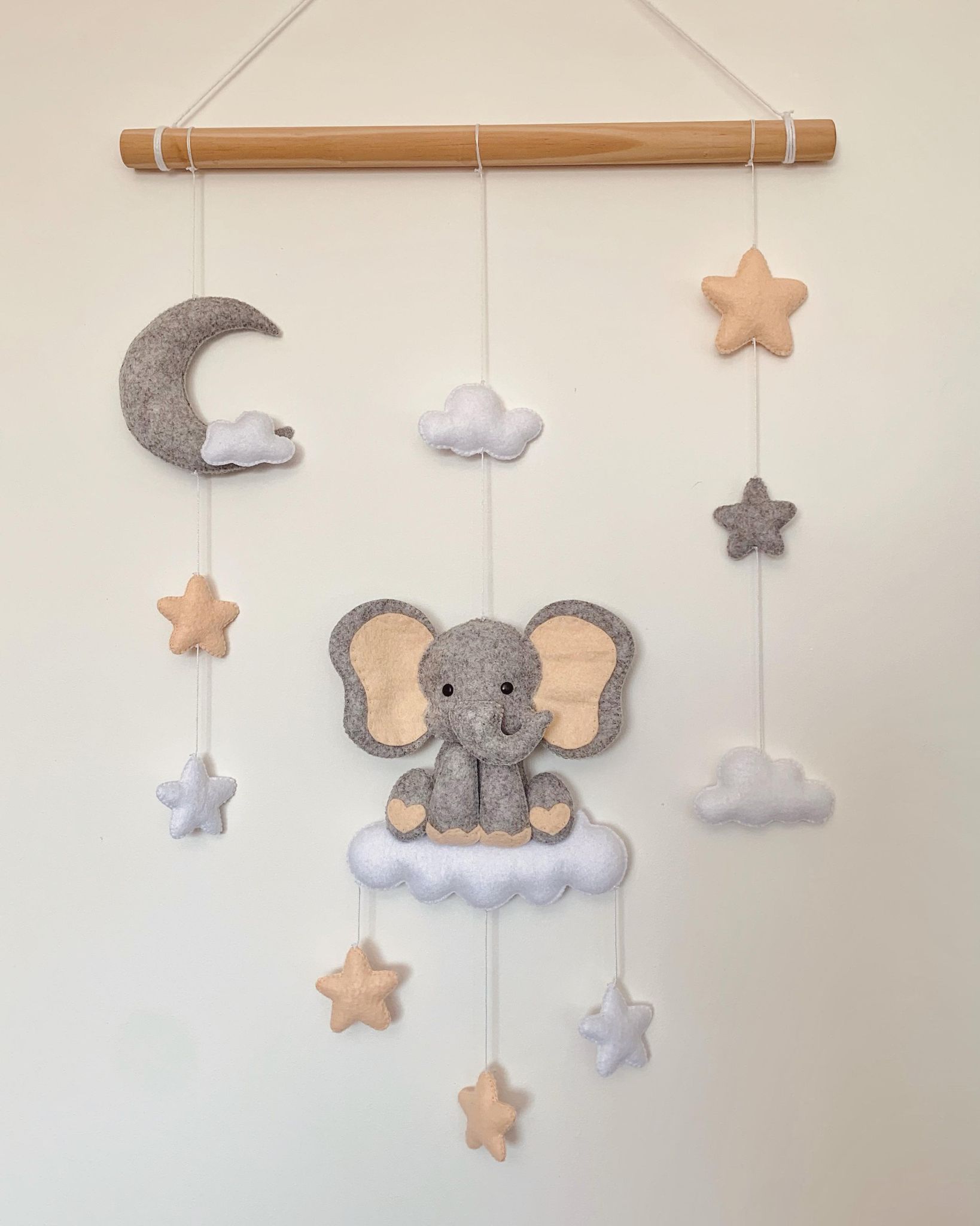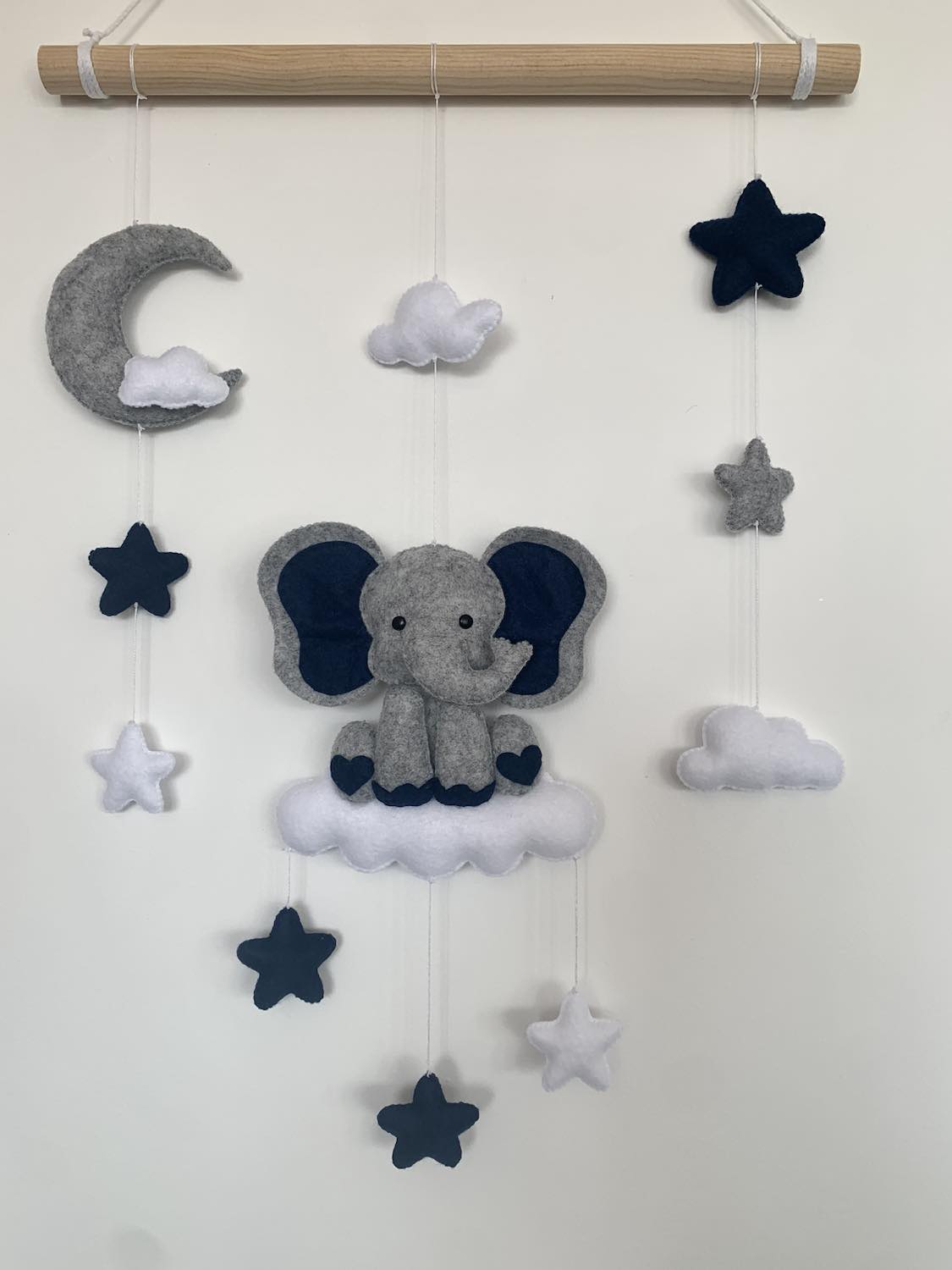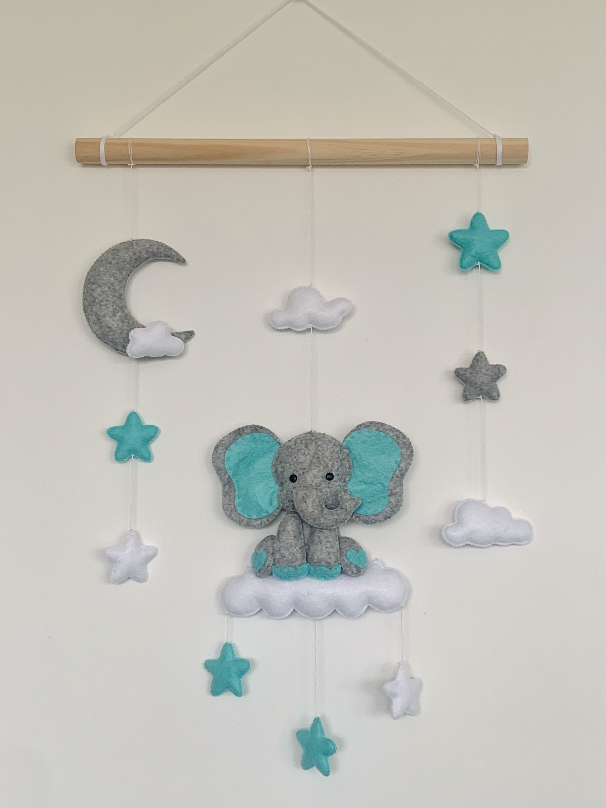 Mobile mural éléphant, en feutrine, entièrement fait main.