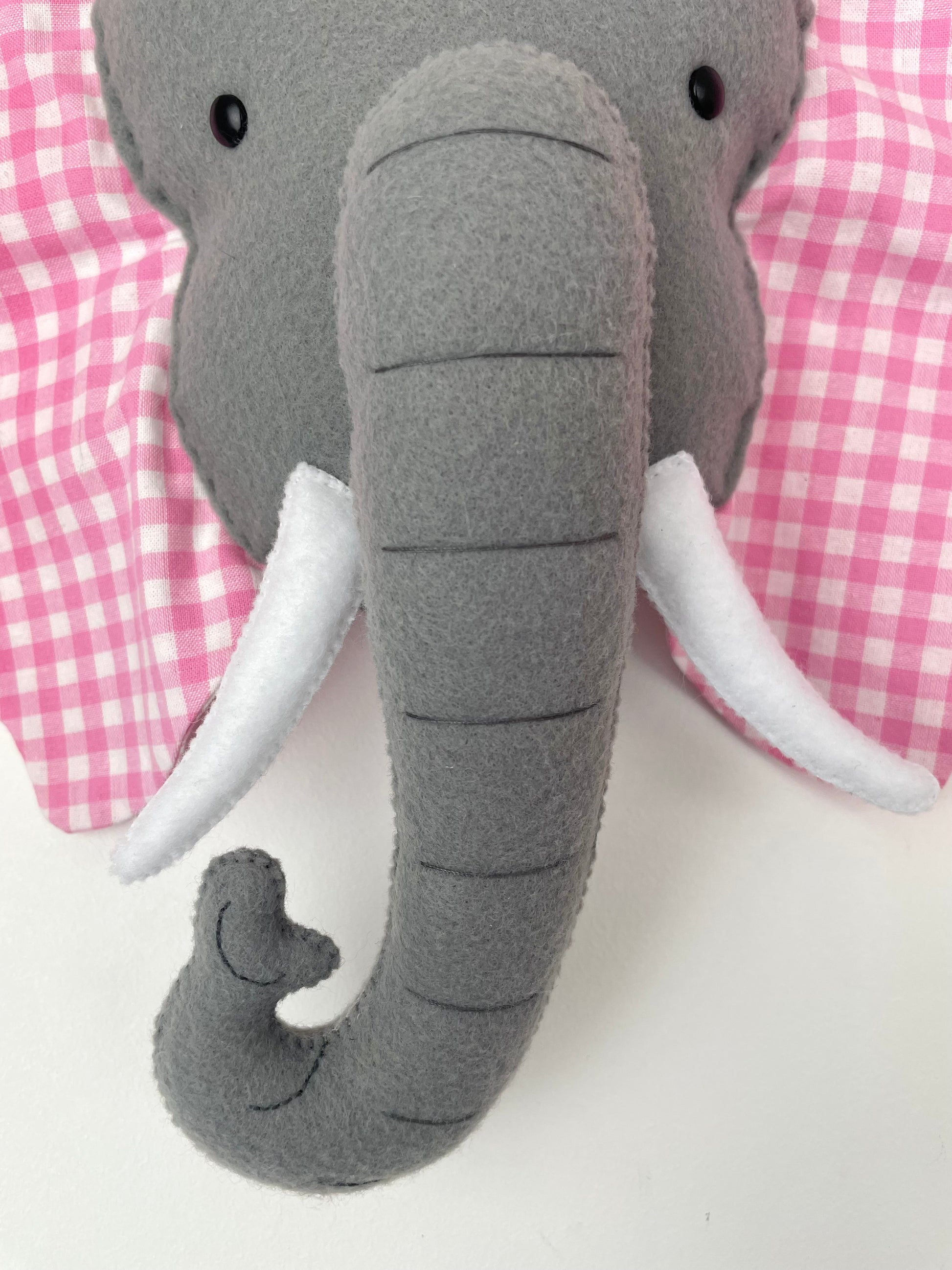 Trophée éléphant entièrement cousu main.
